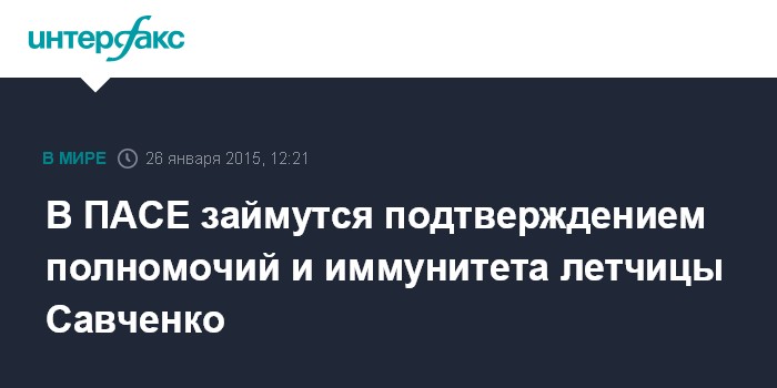 Москва. 26 января. INTERFAX.RU - Бюро ПАСЕ попросит комитет ассамблеи по регламенту подтвердить полномочия украинской летчицы Надежды Савченко, которая как депутат Верховной рады была включена в делегацию Украины в ПАСЕ, но остается под арестом в России. Об этом сообщил член делегации Иван Попеску.