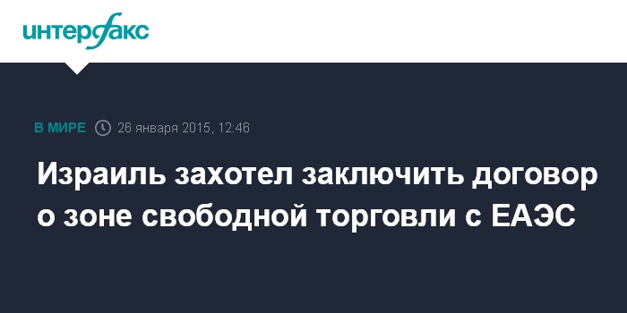 Москва. 26 января. INTERFAX.RU - Израиль хочет заключить договор о зоне свободной торговли с Евразийским экономическим союзом, заявил глава МИД этой страны Авигдор Либерман.