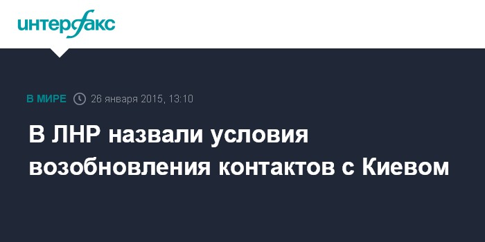 Москва. 26 января. INTERFAX.RU - В руководстве самопровозглашенной Луганской народной республики заявляют о готовности к контактам с Киевом при условии встречных мирных шагов.