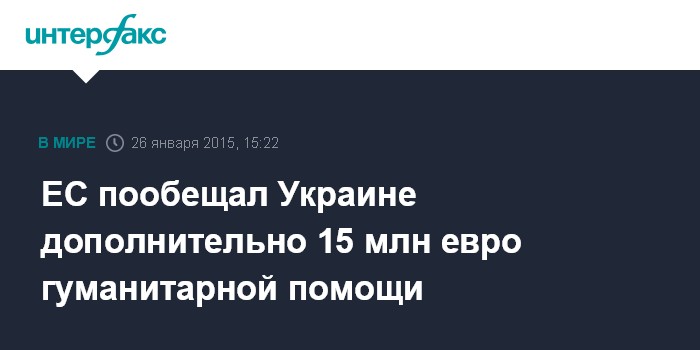 Москва. 26 января. INTERFAX.RU - Европейский Союз увеличивает гуманитарную помощь Украине в связи с продолжением боевых действий в Донбассе.