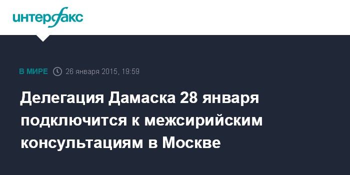 Делегация Дамаска 28 января подключится к межсирийским консультациям в Москве