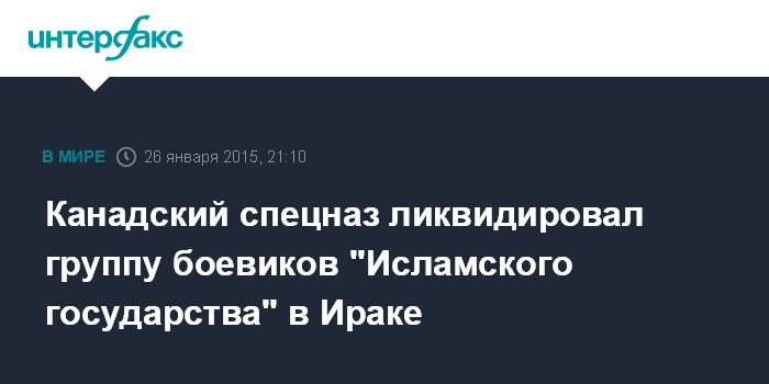 Командующий войсками специального назначения Канады бригадный генерал Мишель Руло сообщил журналистам 20 января, что ранее канадский спецназ вступил в столкновение с членами ИГ в Ираке. Он отметил, что в ответ снайперы открыли огонь по боевикам и уничтожили их. В результате атаки канадские спецназовцы не пострадали.
