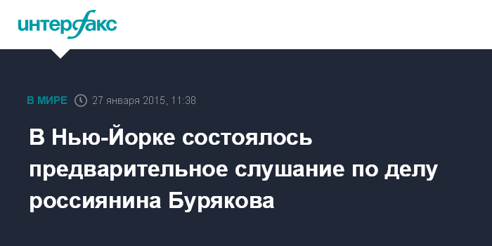 Москва. 27 января. INTERFAX.RU - В федеральном суде Манхэттена прошло предварительное судебное слушание по делу россиянина Евгения Бурякова, арестованного по обвинению в шпионаже, сообщает агентство Associated Press.