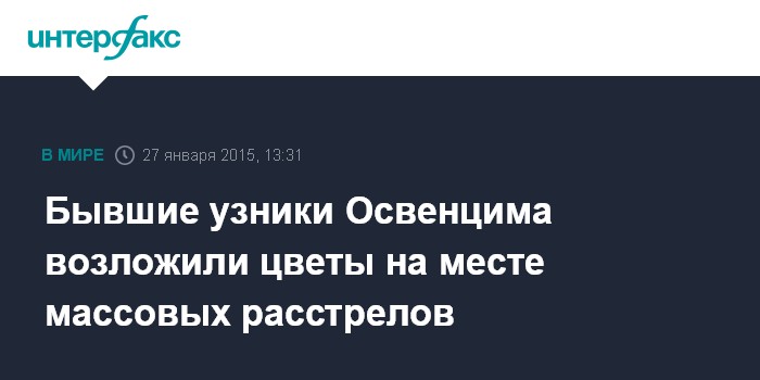 Москва. 27 января. INTERFAX.RU - Церемония возложения цветов и зажжения поминальных свечей состоялась во вторник на территории мемориального комплекса в бывшем концентрационном лагере Освенцим в Польше, сообщает польское телевидение.