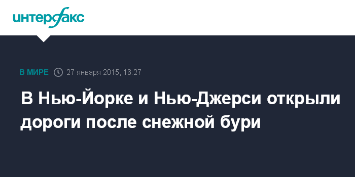 Москва. 27 января. INTERFAX.RU - Транспортные магистрали оживают во вторник в Нью-Йорке и штате Нью-Джерси после небывалой снежной бури.