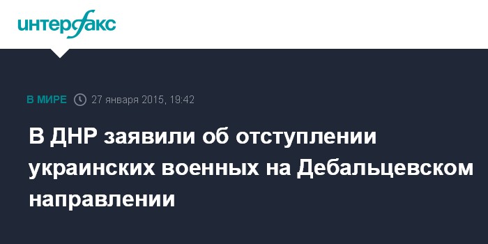 Москва. 27 января. INTERFAX.RU - В Минобороны самопровозглашенной Донецкой народной республики заявили об отступлении украинских военных на Дебальцевском направлении с большими потерями.