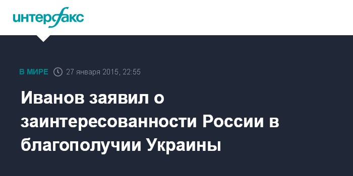 "Россия заинтересована в том, чтобы Украина была дружественным, самостоятельным, способным сама себя содержать государством. Сегодняшняя ситуация вызывает у нас беспокойство. Нищая, неуправляемая, недееспособная, неспособная себя содержать Украина - это колоссальная проблема для России", - заявил Иванов на пресс-конференции в Освенциме.
