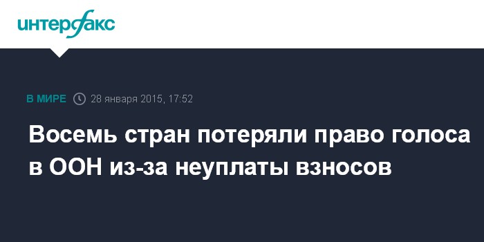 При этом отмечается, что всего 12 стран не выполнили требования статьи 19 Устава ООН. Но четыре из них, включая, например, Сомали и Гвинею-Бисау, права голоса не лишали, так как эти государства просто не могут выполнить требования организации в силу различных причин.