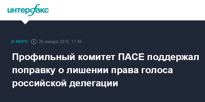Москва. 28 января. INTERFAX.RU - Профильный комитет ПАСЕ (по мониторингу) с перевесом в один голос поддержал поправку к резолюции о полномочиях российской делегации, в которой предлагается лишить РФ права голосовать и участвовать в работе руководящих органов Ассамблеи, сообщил замглавы российской делегации Леонид Слуцкий.