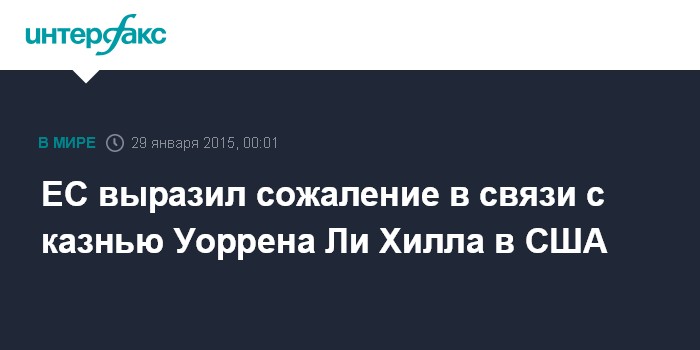 Москва. 29 января. INTERFAX.RU - Евросоюз выразил сожаление в связи с исполнением смертного приговора Уоррену Ли Хиллу в американском штате Джорджия.