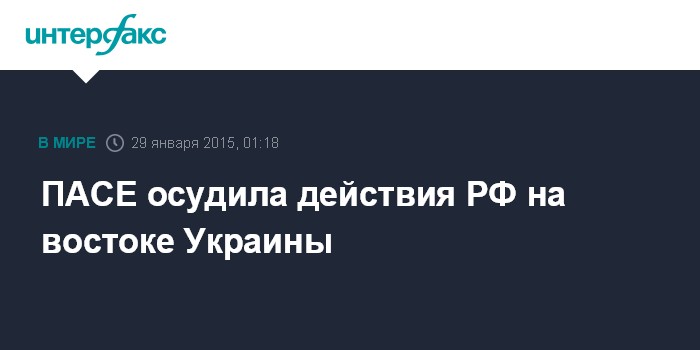 Москва. 29 января. INTERFAX.RU - Парламентская ассамблея Совета Европы (ПАСЕ) осудила роль России в эскалации насилия на востоке Украины.