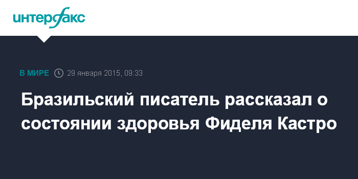 Бразильский писатель рассказал о состоянии здоровья Фиделя Кастро