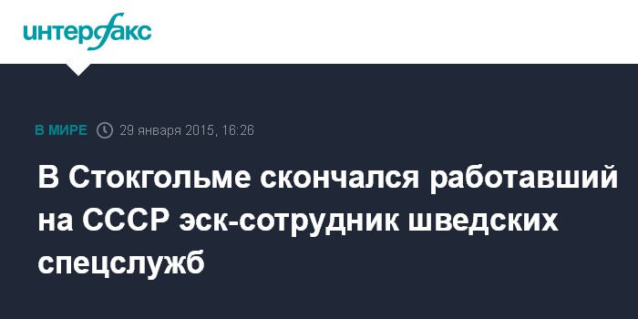 В Стокгольме скончался работавший на СССР эск-сотрудник шведских спецслужб