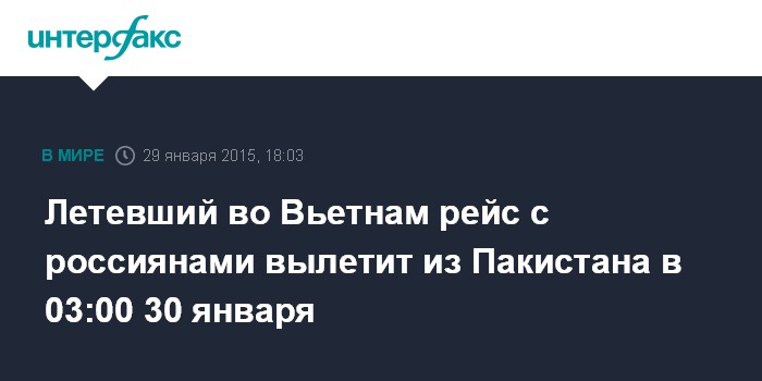 Летевший во Вьетнам рейс с россиянами вылетит из Пакистана в 03:00 30 января