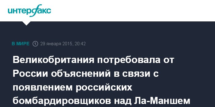 Великобритания потребовала от России объяснений в связи с появлением российских бомбардировщиков над Ла-Маншем