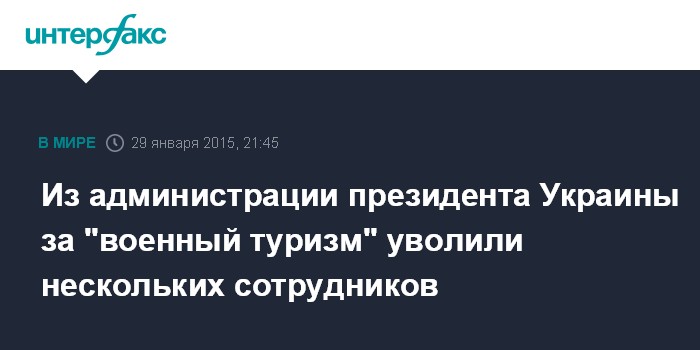 "Сегодня президент Украины принял решение об увольнении нескольких сотрудников администрации президента, которые в последнее время получили статус участников АТО… Статус участников боевых действий должны получать только те военные, которые непосредственно на поле боя с оружием в руках защищает нашу свободу. Военный туризм, если есть такие случаи, нужно прекратить", - отметил заместитель главы администрации президента Андрей Таранов.