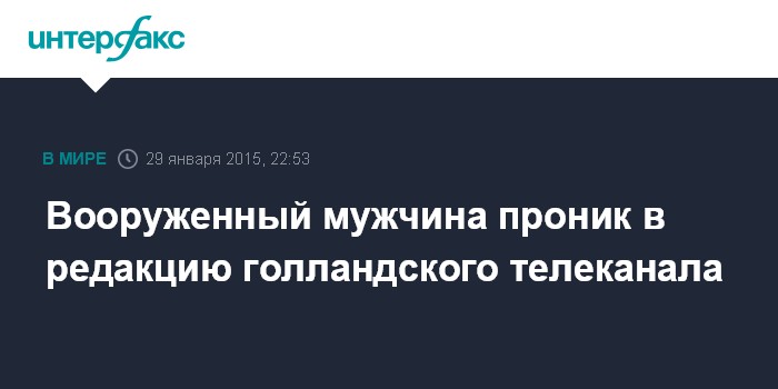 Москва. 29 января. INTERFAX.RU - Полиция Нидерландов задержала воруженного мужчину, проникшего в редакцию общественного телеканала NPO1, сообщила BBC News в четверг.
