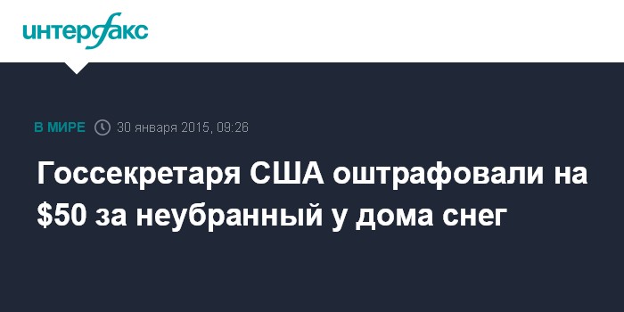 В сообщении говорится, что штраф был назначен в четверг, и каждый день неисполнения решения о расчистке сугробов грозит госсекретарю взысканием 50 долларов.