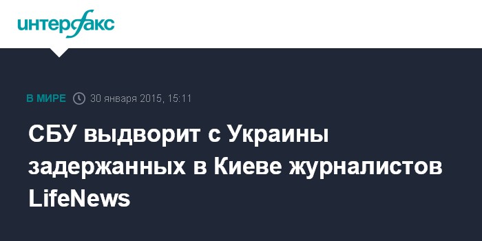 Москва. 30 января. INTERFAX.RU - В Службе безопасности Украины подтвердили задержание двух журналистов съемочной группы российского телеканала LifeNews за деятельность, которая "причиняет вред национальным интересам Украины и не связана с журналистикой".