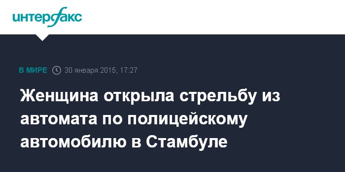Москва. 30 января. INTERFAX.RU - Неизвестная женщина открыла огонь из автомата по полицейскому автомобилю на площади Таксим в центральной части Стамбула, сообщает в пятницу Анатолийское информагентство.