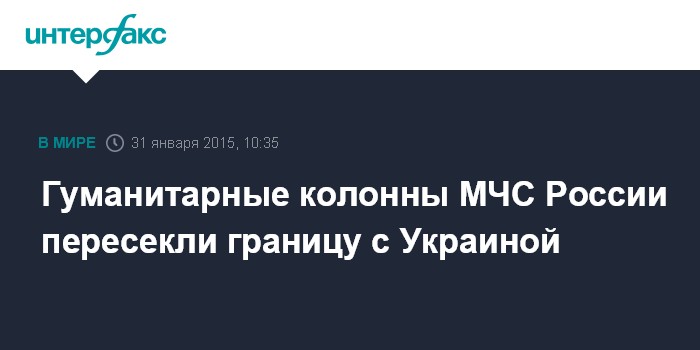 Москва. 31 января. INTERFAX.RU - Автоколонны МЧС с гуманитарным грузом пересекли российскую границу и начали движение в сторону Донецка и Луганска, сообщили "Интерфаксу" в субботу в пресс-службе МЧС России.