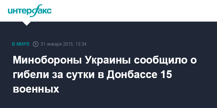 Москва. 31 января. INTERFAX.RU - За минувшие сутки в зоне военной операции на юго-востоке Украины погибли 15 и ранены 30 украинских военнослужащих, сообщил министр обороны Украины Степан Полторак.