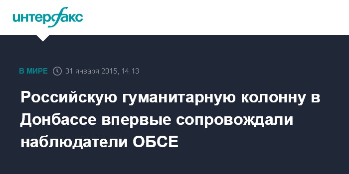 Москва. 31 января. INTERFAX.RU - Автоколонну МЧС России с гуманитарным грузом для Донбасса от российско-украинской границы впервые сопровождали наблюдатели ОБСЕ, сообщил журналистам начальник Ногинского спасательного центра МЧС Александр Лекомцев.
