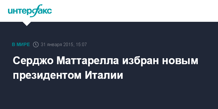 Москва. 31 января. INTERFAX.RU - Члены итальянского парламента избрали новым главой государства судью Конституционного суда Серджо Маттареллу, сообщают местные СМИ. Его кандидатуру выдвинула Демократическая партия во главе с премьер-министром Маттео Ренци.