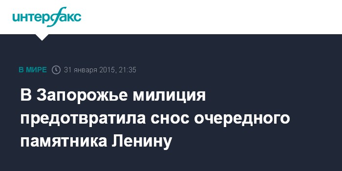 Москва. 31 января. INTERFAX.RU - Попытка группы жителей Запорожья снести памятник Ленину завершилась ничем - усиленные наряды милиции не позволили местным "антиленинцам" подойти близко к монументу.
