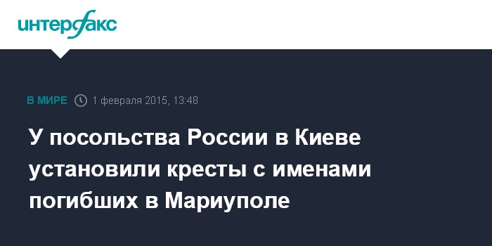 Москва. 1 февраля. INTERFAX.RU - У здания посольства Российской Федерации в Киеве в воскресенье днем группа граждан установила памятные кресты с именами погибших во время январского обстрела Мариуполя.