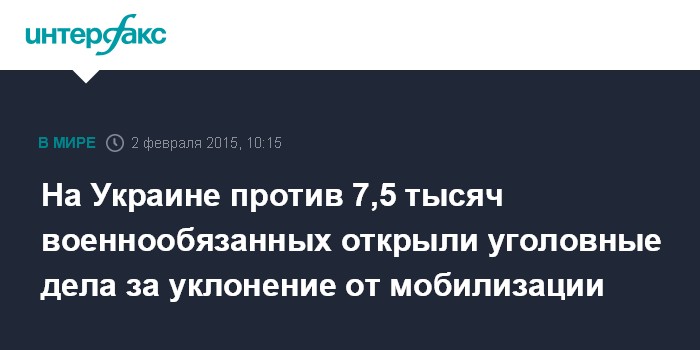 Москва. 2 февраля. INTERFAX.RU - Более 1300 уголовных производств открыто в отношении военнообязанных за уклонение от прохождения военной службы, заявляют в Министерстве обороны Украины.