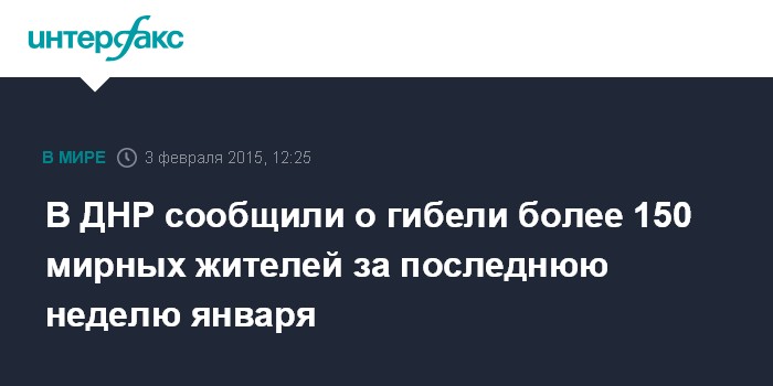 Москва. 3 февраля. INTERFAX.RU - На территории самопровозглашенной Донецкой народной республики за период с 24 по 30 января погибло более 150 мирных жителей, сообщается на сайте уполномоченного по правам человека в ДНР.