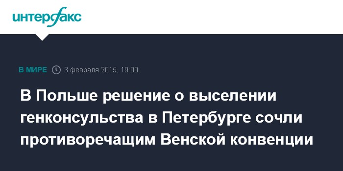 Москва. 3 февраля. INTERFAX.RU - Постановление арбитражного суда Санкт-Петербурга и Ленинградской области о взыскании многомиллионной задолженности с генконсульства Польши идет вразрез с положениями Венской конвенции о консульских сношениях 1963 года, заявили "Интерфаксу" в посольстве Польши в Москве.