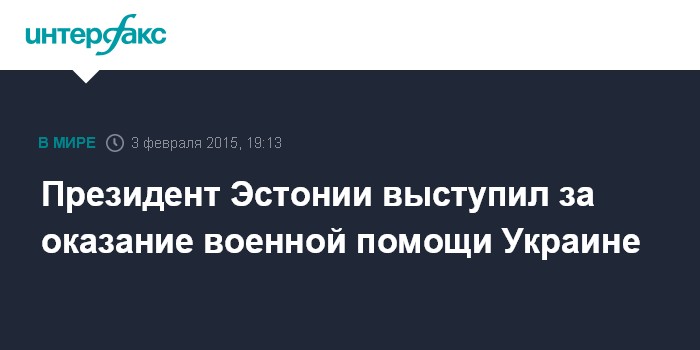 Москва. 3 февраля. INTERFAX.RU - Президент Эстонии Тоомас Хендрик Ильвес (Toomas Hendrik Ilves) заявил, что ситуация на Украине серьезная и ей необходимо оказать военную помощь.