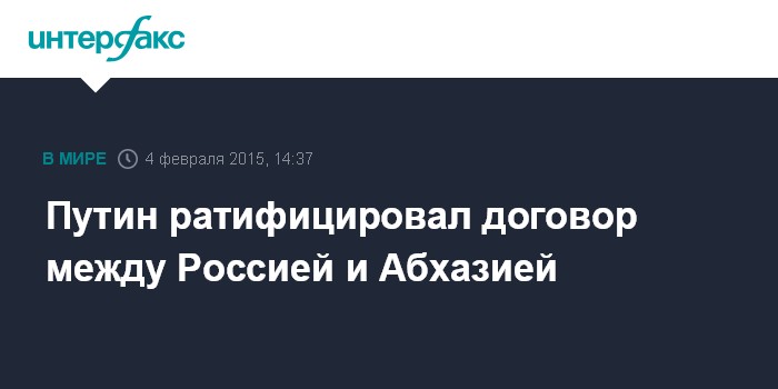 Москва. 4 февраля. INTERFAX.RU - Президент РФ Владимир Путин подписал закон о ратификации Договора между Россией и Абхазией о союзничестве и стратегическом партнерстве, сообщается на сайте Кремля.