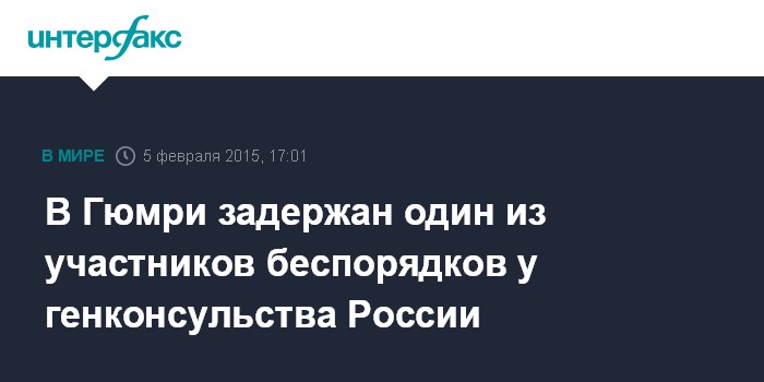 Москва. 5 февраля. INTERFAX.RU - В рамках уголовного дела, возбужденного по факту беспорядков у здания генерального консульства России во втором по величине армянском городе Гюмри задержан Мнацакан Алексянян, сообщили "Интерфаксу" в Следственном комитете Армении.