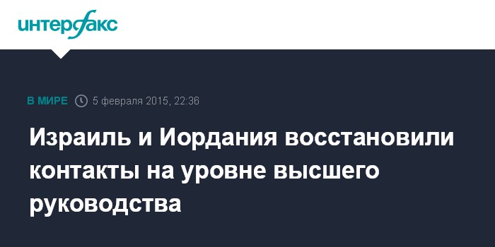Израиль и Иордания восстановили контакты на уровне высшего руководства