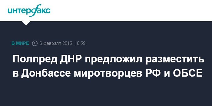 Москва. 6 февраля. INTERFAX.RU - Полномочный представитель самопровозглашенной Донецкой народной республики на минских переговорах Денис Пушилин предложил разместить миротворческий контингент на разграничительной линии в Донбассе.