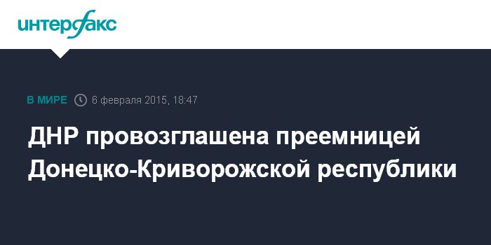 Москва. 6 февраля. INTERFAX.RU - Депутаты самопровозглашенной Донецкой народной республики приняли меморандум о преемственности ДНР Донецко-Криворожской республике.
