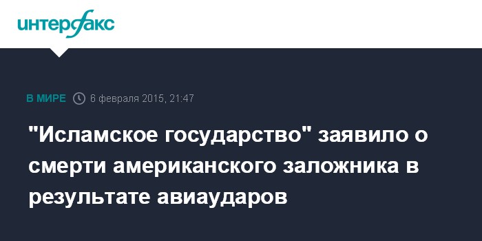 Москва. 6 февраля. INTERFAX.RU - Жертвой удара иорданских ВВС по позициям "Исламского государства" в Сирии стал удерживаемый ими американский заложник, заявили в террористической организации. Об этом сообщает в пятницу американская компания SITE, наблюдающая за активностью исламских радикалов в интернете.