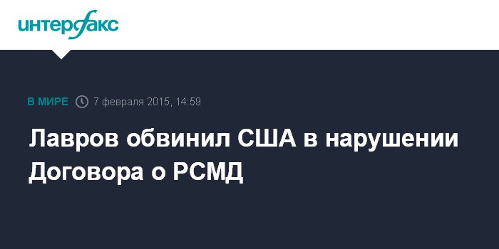 Москва. 7 февраля. INTERFAX.RU - Глава российского МИД Сергей Лавров обвинил США в нарушении российско-американского Договора о ракетах средней и меньшей дальности (РСМД).