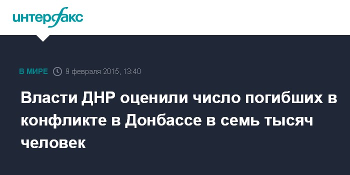 Москва. 9 февраля. INTERFAX.RU - Число погибших в самопровозглашенной Донецкой республике в результате вооруженного конфликта на востоке Украины составляет около семи тысяч человек, сообщил "Русской службе новостей" полномочный представитель ДНР на минских переговорах контактной группы Денис Пушилин.