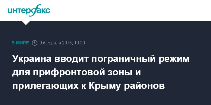 Украина вводит пограничный режим для прифронтовой зоны и прилегающих к Крыму районов