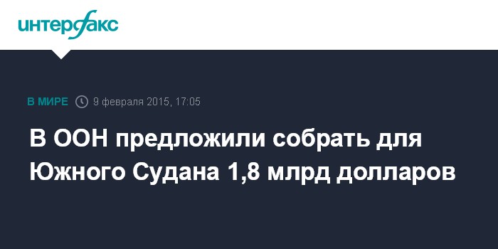 Москва. 9 февраля. INTERFAX.RU - Южный Судан нуждается в гуманитарной помощи в размере $1,8 млрд, заявила в понедельник заместитель генсека ООН по гуманитарным вопросам Валери Амос.