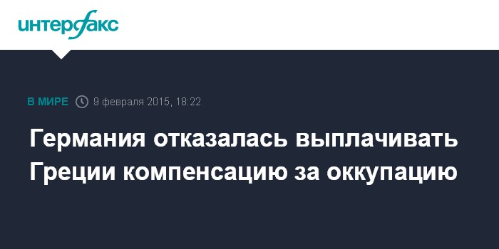 Москва. 9 февраля. INTERFAX.RU - Германия не будет выплачивать греческому правительству военные репарации за преступления нацистов во время Второй мировой войны, заявил в понедельник германский министр экономики Зигмар Габриэль.
