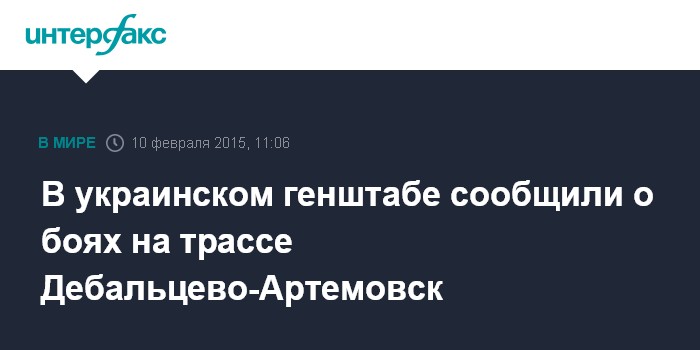 Москва. 10 февраля. INTERFAX.RU - Обстановка на трассе Дебальцево-Артемовск (Донецкая область) остается сложной, украинские военные продолжают вести бои с противником, информирует и.о. представителя генерального штаба Вооруженных сил Украины Владислав Селезнев.