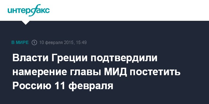 Власти Греции подтвердили намерение главы МИД постетить Россию 11 февраля