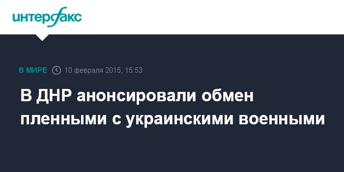Москва. 10 февраля. INTERFAX.RU - Обмен военнопленными между ополчением самопровозглашенной Донецкой народной республики и Вооруженными силами Украины, возможно, состоится 11 февраля, сообщает омбудсмен ДНР Дарья Морозова.