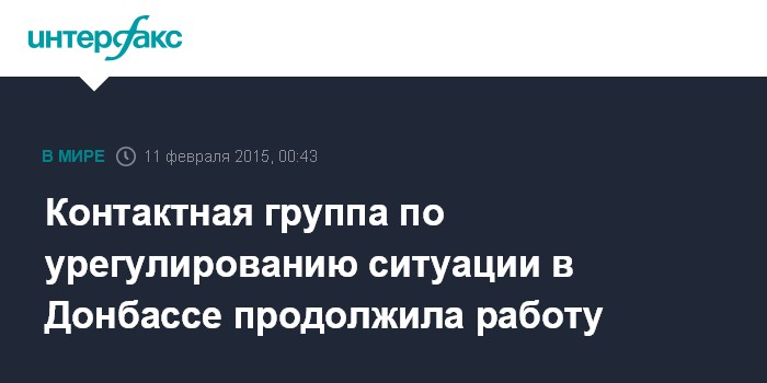 Москва. 11 февраля. INTERFAX.RU - Контактная группа по урегулированию ситуации в Донбассе продолжает свою работу в Минске, сообщил "Интерфаксу" источник, информированный о работе группы. По его информации, пока не принято никаких решений и не подписано никаких документов.