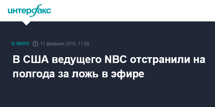 В США ведущего NBC отстранили на полгода за ложь в эфире